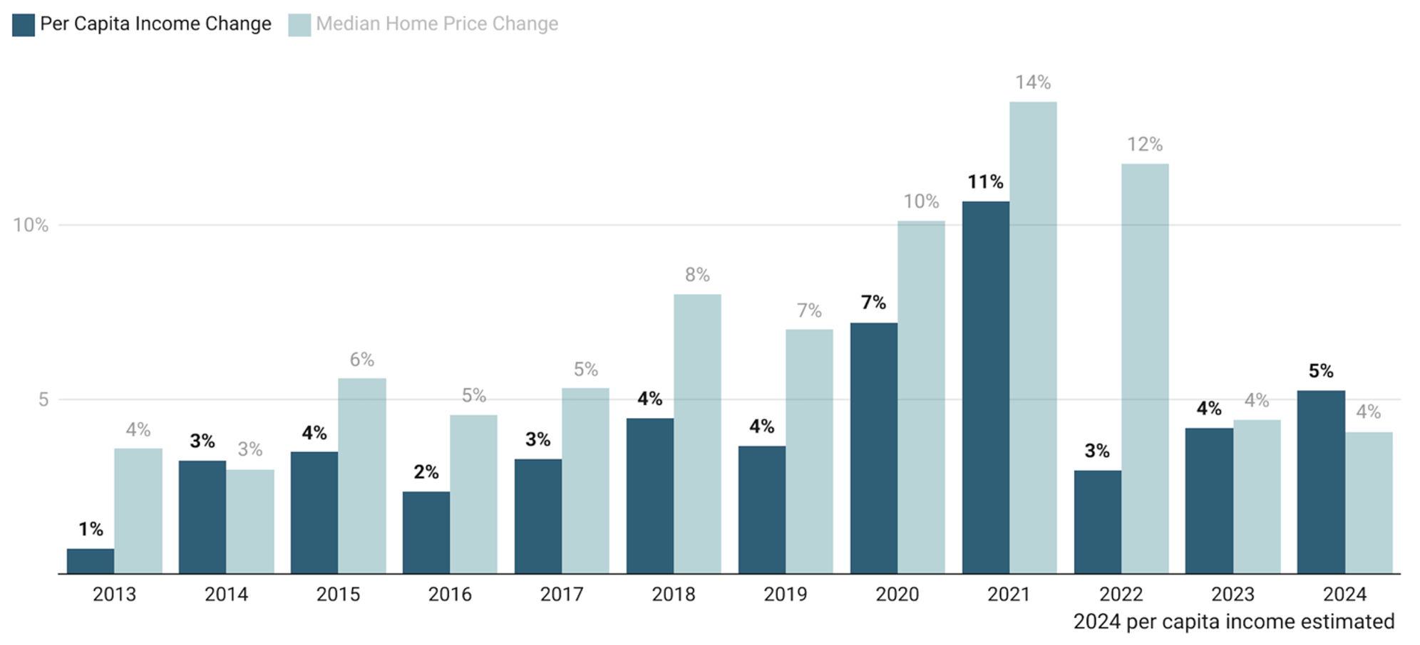 Chart 2. In 2024, income grew faster than home prices for the first time in a decade