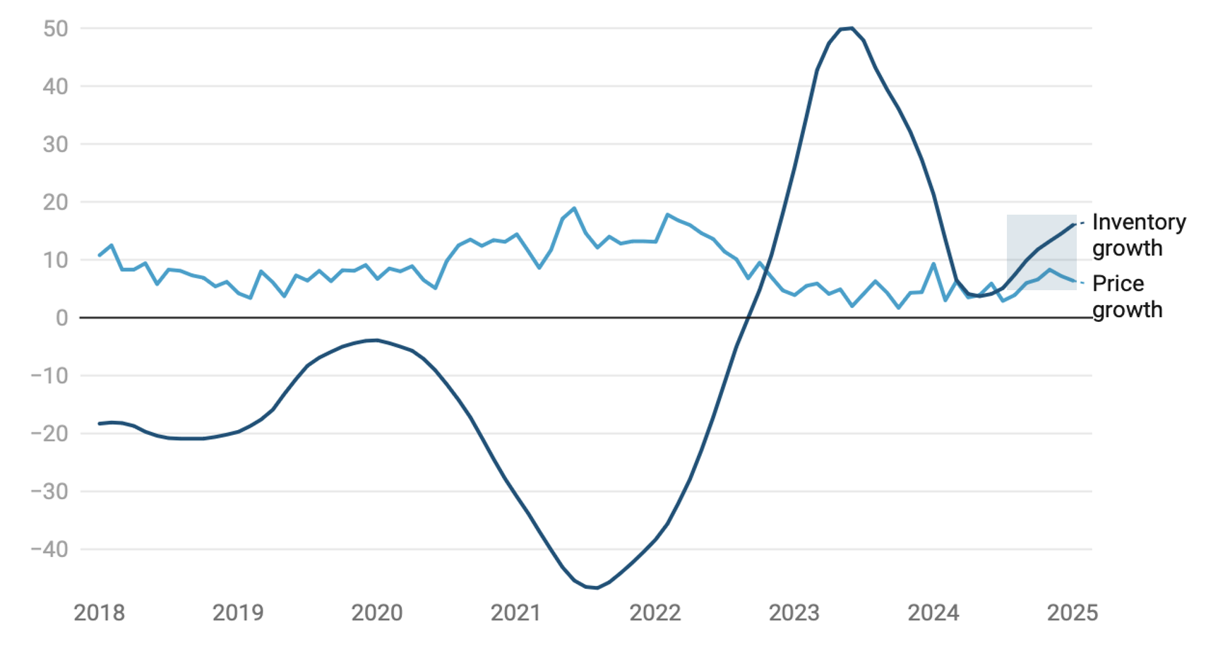 Chart 5. Price growth has been slower since 2023, when inventory began to grow