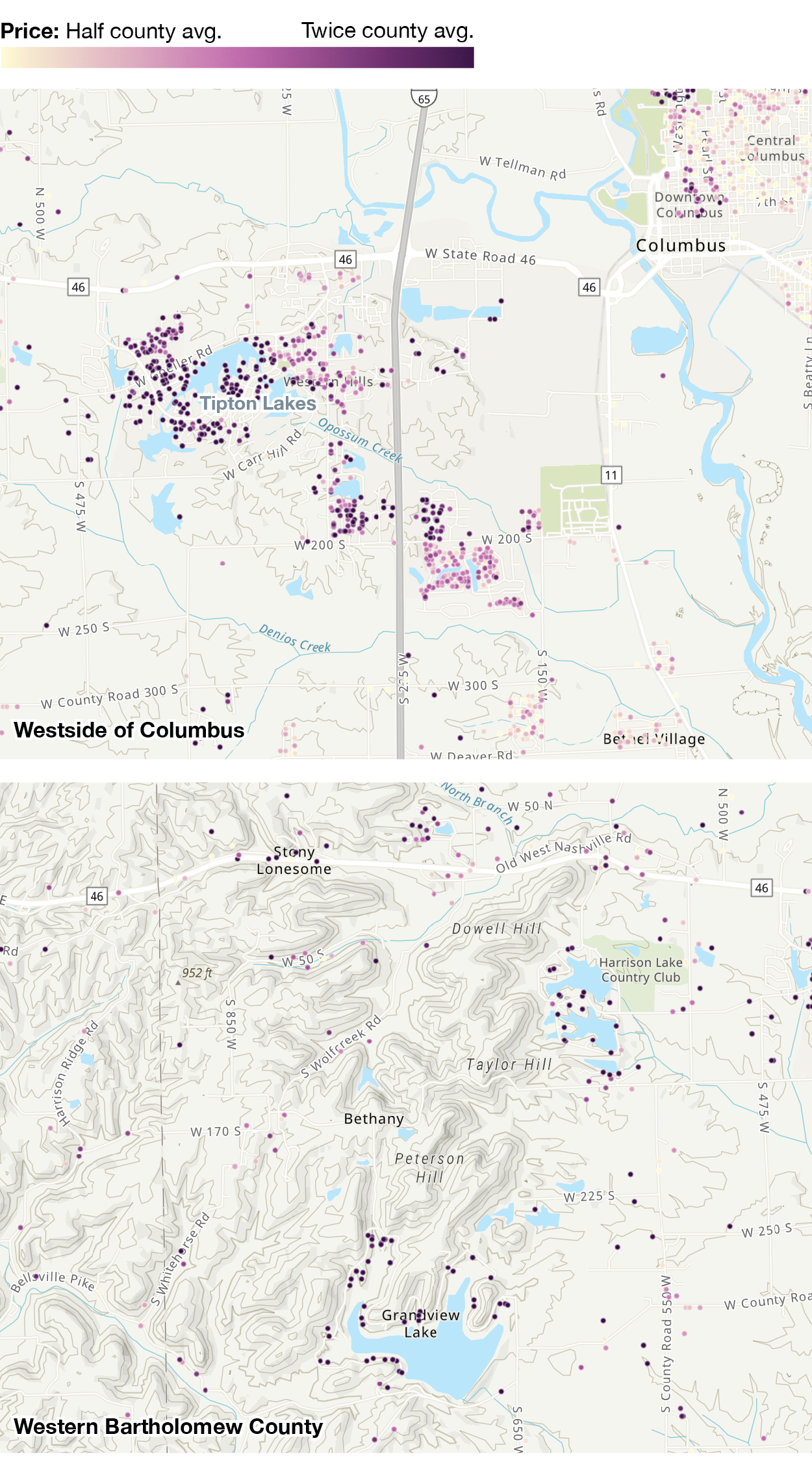 Small lakes boost prices in Bartholomew County and homes next to medium lakes are double the price of an equivalent home 1,000 feet away.
