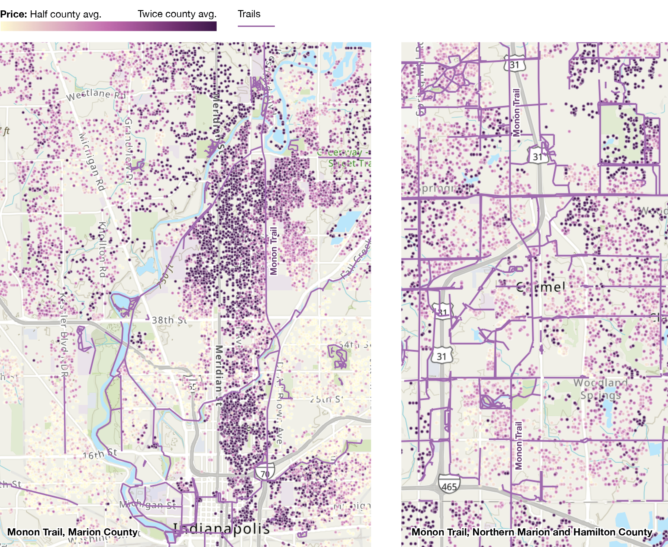 The Monon Trail has the same price impact as beachfront property on a medium-sized lake.