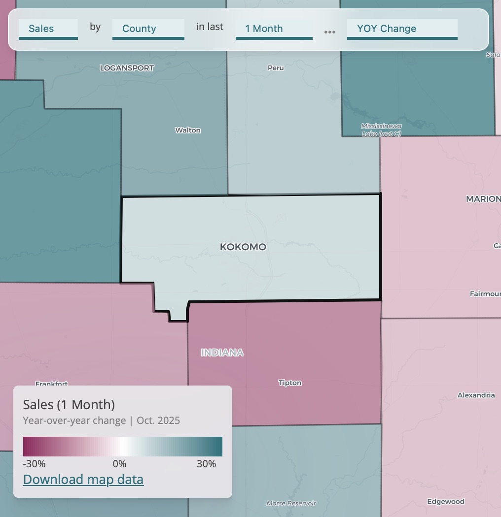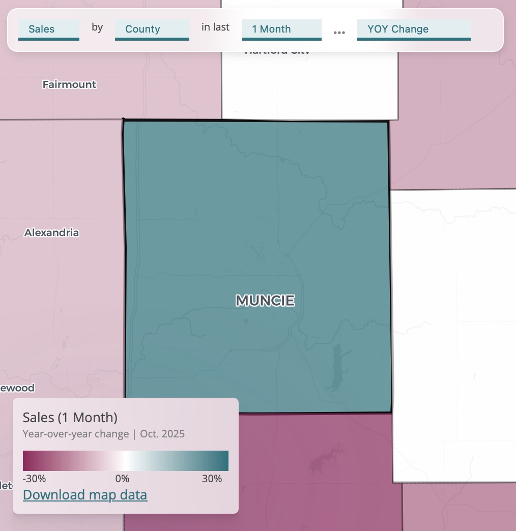 Indy MSA was +5% YOY. Fort Wayne, Louisville, and Evansville were all down 3%.
